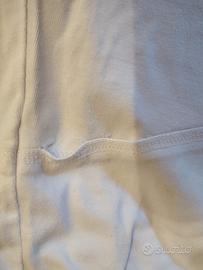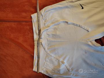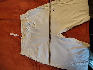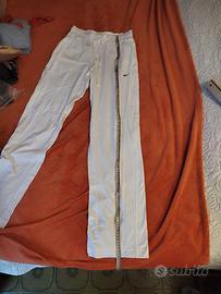 Pantaloni da tuta Nike di colore bianco. Misure: vita 39, fianchi 55 cm, lunghezza 114 cm. Ha un piccolo difetto,si vede sulla ultima foto. Piccola scuciture sul dietro. - Logo Nike sul lato. - Coulisse in vita per una vestibilità regolabile. - Tasche laterali