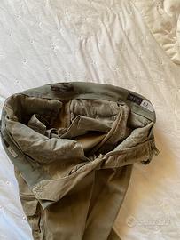 Vendo pantaloni PIATTO con tasche laterali rimesse a modello e vestibità 48 - 50. Colore marrone chiaro. Usate pochissimo.