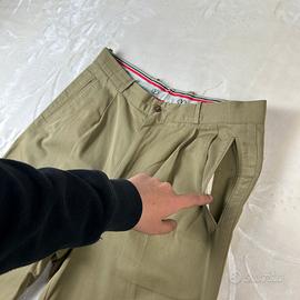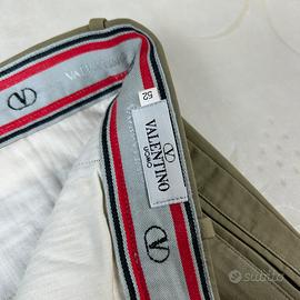 Descrizione Pantaloni Valentino Uomo originali color beige/sabbia, taglia 52. Modello elegante con pinces frontali, passanti per cintura, chiusura con zip e bottone, tasche laterali oblique e tasca posteriore con bottone. Bellissimo dettaglio interno logato Valentino e piccolo logo ricamato sul retro. Linea raffinata e versatile, perfetti sia per outfit casual chic che più eleganti. Ottime condizioni generali.