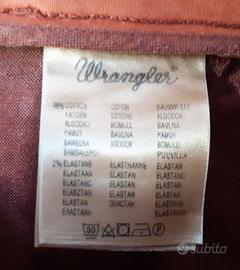 pantalone da uomo della wrangler. color fucsia rosè in buone condizioni. al 98% di cotone. marchi originali di fabbrica