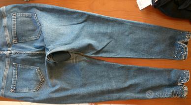 Pantaloni denim jeans con punti luce sul fondo Toppa sulla seduta
