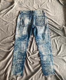 • Modello: Jeans in denim effetto acid wash, chiusura con 6 bottoni a vista