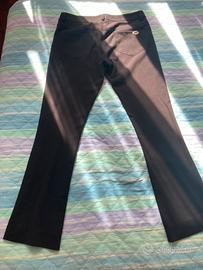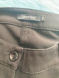 Chiusura con zip e bottone, tasche sul retro e dettaglio argentato con bacino