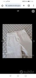 Pantalone di colore bianco Taglia 42 in cotone elasticizzato. Manca il cartellino ma è nuovo. Due tasche anteriori con motivo plissettato La tasca posteriore è finta