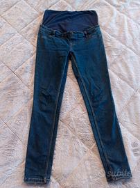 vendo 1 paio di pantaloni di jeans premaman taglia 40, skinny, con fascia elastica molto comodi. Utilizzati ma senza difetti e come nuovi .