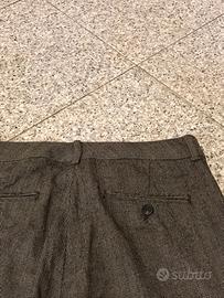 Magnifici pantaloni di pura lana color beige scuro tendente al grigio con rifiniture di grande stile e qualità Made in Italy indossati poco e tenuti in ottime condizioni senza segni di usura