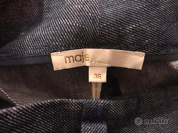 Pantaloni di lino da donna marca Maje taglia 36, color grigio/azzurro, vita alta con cintura coordinata, gamba leggermente a siglare con risvolti alle caviglie, chiedo 8 euro;