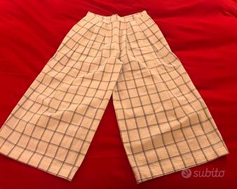 Pantaloni di cotone da donna, marca Kalia taglia 46, bianchi con quadri blu/azzurro, vita alta con gamba larga a 3/4 tipo pinocchietto, chiedo 3 euro.