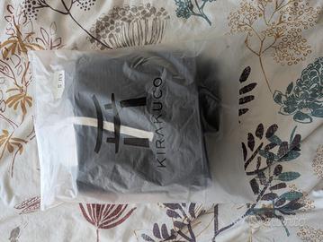 Pantalone nero di velluto a coste di marca Kirakuko. Ispirato allo streetwear giapponese. Nuovo con cartellino. Sul loro sito costa 49€+spedizione. Taglia S (veste come una 43) Mai indossati. Presi con taglia sbagliata e il reso non viene rimborsato. Cintura elastica e iscrizioni giapponesi sui cordoncini di cotone. Tasche laterali e una tasca posteriore. Unisex