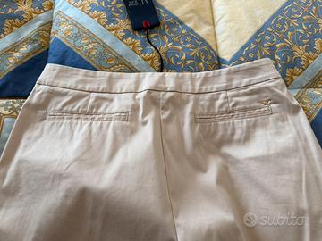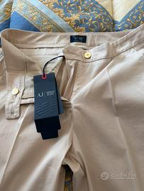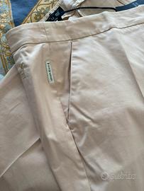 Pantalone donna primaverile/estivo Armani, nuovo con cartellino, di colore beige, tessuto tecnico molto bello e morbido, presenta due tasche laterali sul davanti e due tacchine dietro, taglia 46, veramente bello.