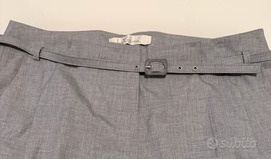 Pantaloni con piega e risvolto. Cintura in vita . Colore grigio chiaro. Marchio Intrend. Taglia 46 larghezza vita 42 cm. Tessuto fresco lana leggero .