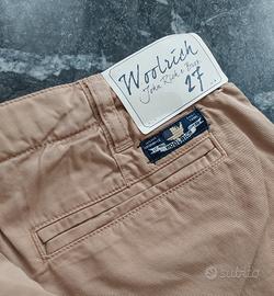 pantaloni donna cotone beige Woolrich gamba dritta con tasche e chiusura bottoni. taglia 27/ 40- 42 italiana. nuovo con cartellino