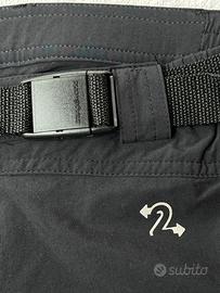 Pantalone nero 3/4 da montagna per donna con chiusura in vita da gancio e cintura con sgancio a pressione. 5 tasche con chiusura a cerniera, 2 sui fianchi, due dietro ed una sulla gamba sx. Chiusura sul fondo con cordoncini regolabili.