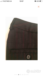 Pantaloni DOLCE & GABBANA originali - tg. 44 (larghezza vita 41 cm) - 90%lana 8% nylon 2% elastan - leggerissimo gessato a righine bordeaux su fondo antracite - taglio a sigaretta - spacchetto al fondo - chiusura con cerniera e doppio bottone centrale - due taschine davanti e due dietro chiuse con bottone.