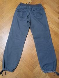 Vendo pantaloni estivi di cotone leggero, con elastico in vita e cordino per allacciarli, ed elastico alla caviglia, con stringa per regolarne la larghezza.