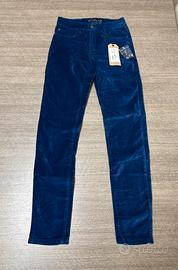 Pantaloni Attrattivo da donna in velluto liscio blu chiaro, modello slim con 5 tasche, tutti i dettagli sono visibili in foto, la taglia segnata sull’etichetta é W27 veste circa XS disponibile ad inviare tutte le misure in centimetri, acquistato ma mai messo in uso, vendo per cambio taglia dopo la gravidanza, per ulteriori informazioni non esitate a contattarmi in chat.