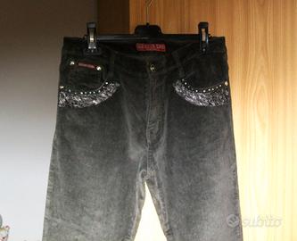 Pantalone donna in velluto di cotone elasticizzato, tg 46. Colore grigio scuro.