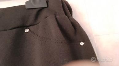 pantaloni donna in viscosa tg.XXL colore nero. due tasche finte sul davanti con due bottoncini brillantinati. cintura elasticizzata. pantaloni morbidi.
