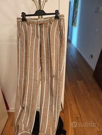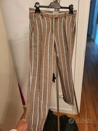 vendo causa inutilizzo, pantaloni in lino marrone (marca Xetra) con riga azzurra. pantalone con gamba regolare