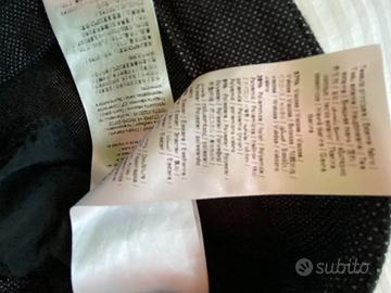 Tessuto elasticizzato e vestibilità aderente. Composizione 57% viscosa, 28% poliammide, 9% poliestere e 6%elastene.