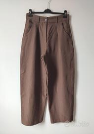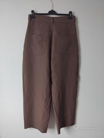 Pantaloni da donna color marrone a vita alta con pinces Zara