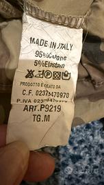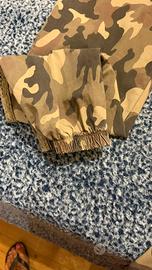 Pantaloni comodi con stampa mimetica. - Vita elasticizzata. - Fondo gamba con elastico. - Piccolo banda laterale di pizzo. - Tg M
