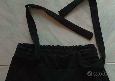 Pantaloni da donna e ragazza coolore nero con elastico in vita e cinta, larghi stile zampa elefante e lunghi fino alla caviglia. Taglia unica.