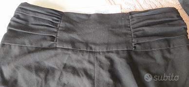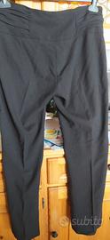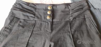 Pantaloni donna a vita alta neri con bottoni decorazione. Gamba ampia con trapunta centrale. Misure: vita cm 39, fianchi cm 50, lunghezza cm 96.
