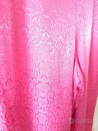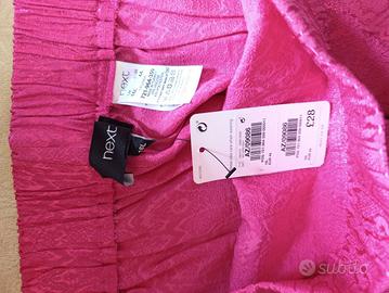 pantaloni donna nuovi in viscosa e poliestere nuovi con cartellino presente, colore fucsia con fantasia animalier, taglio dritto, mai utilizzati per taglia inesatta