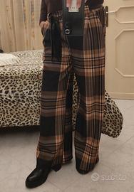 pantaloni donna palazzo fantasia quadri e righe colore nero e marrone. taglia M