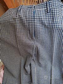 Pantaloni vintage a zampa di elefante di alta qualità, quelli quadrettato sono di Chanel tg 36 francese, acquistati a piazza Carli. Quelli neri (in foto sono venuti grigi) sono elegantissimi con bottoncini sulla parte finale della gamba, tg 42/44 Come nuovi, perfetto stato, indossati massimo tre volte, poi non sono più entrati causa aumento di peso. Li vendo a soli 30 euro a paio oppure 50 entrambi, intrattabili. Balduina