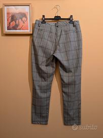 Vendo pantalone da donna TLPT in ottimo stato, indossato poche volte per cambio taglia. Taglia M, guarda la foto con l’etichetta. A mio parere è una taglia M che veste un po' grande, però fate affidamento all'etichetta. È caratterizzato da un disegno tartan di colore grigio, nero, bianco e verde acqua. Non presenta macchie, strappi e scuciture.