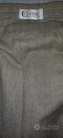 pantaloni donna beige eleganti vita media gamba dritta tessuto morbido cerniera laterale