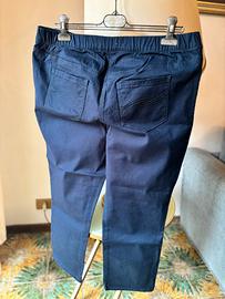 pantaloni donna con elastico in vita blu, modello cinque tasche cropped taglia 50 a gamba dritta, cotone 97%