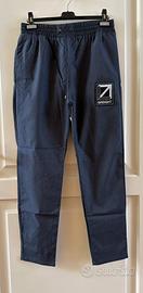 Pantaloni: sul davanti due tasche a filo, vita regolabile da coulisse, applicazione di una patch ricamata del brand sulla gamba sinistra, sul retro una tasca a filetto sul lato destro.