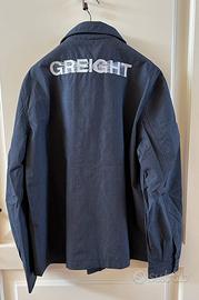 Giacca camicia: chiusura mediante zip frontale nascosta, sul davanti due tasche applicate sulla parte superiore chiuse da pattine, oltre che all'applicazione della patch ricamata del brand amovibile fissata mediante velcro ad un anello sulla tasca, sulla schiena troviamo prezioso ricamo del brand, polsi chiusi da bottoni.
