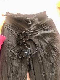 Vendo un jeans e un pantalone premaman, usati solo una volta. Il jeans è della Prenatal, taglia 40-42, il pantalone nero di H&M, taglia 44. Molto comodi e versatili.