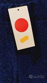 Pantaloni elasticizzati blu brillantinati eleganti finale a zampa Veste taglia XS