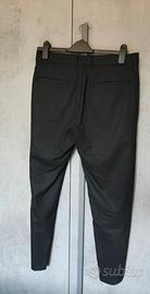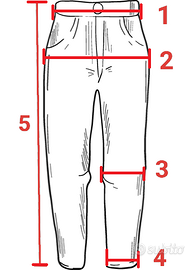 Vendo come da titolo pantaloni neri in tela leggera di Bershka, eleganti a gamba larga e arrivano ad altezza caviglia, skinny cropped fit. I numeri con le misure che metto di seguito fanno riferimento all'ultima foto: 1- 40cm 2- 48cm 3- 20cm 4- 16cm 5- 94,5cm Sono poco elastici, con chiusura a zip.