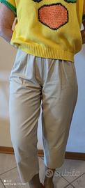 Pantaloni Estivi Beije e Maglia gialla abbinata. Per Donna. Perfetti per la stagione primaverile o autunnale. Taglia M