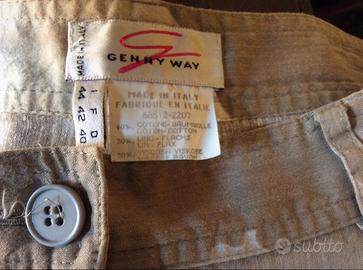 Pantaloni Genny Way, tessuto floreale (foto), 30% lino, 40% cotone e 30% viscosa, vita alta, taglia 44 (foto). Ottima vestibilitá. Indossati pochissimo, perfette condizioni, non presentano imperfezioni o difetti. Vintage Per ulteriori informazioni contattatemi.