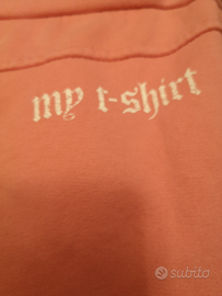 Pantaloni in felpa my Tshirt. Colore rosa. Stella davanti e scritta logo dietro. Molto comodi.