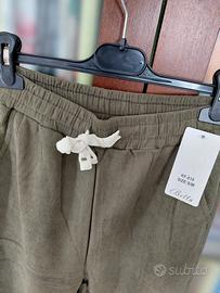 pantaloni felpati donna vita regolabile con elastico gamba ampia tipo velluto colore verde militare mis S/M nuovi
