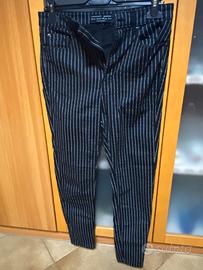 Pantaloni strech modello a vita bassa, elasticizzato, stile jeans, “gessato”, taglia Eur40, marca Stradivarius, usati solo un paio di volte