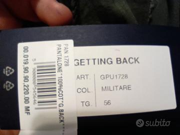 Pantaloni Gettingback Militare, taglia 56, Nuovi con etichetta