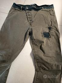 pantaloni originali in stili distressed , perfetti per un look casual e alla moda.ideali per ogni stagione, presentano dettagli molto particolari e chiusura a bottoni. mai indossato per taglia errata