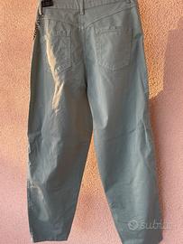 Favolosi pantaloni con catena in gioiello staccabile, colore menta, in cotone ed elastane, pertetti per la primavera/ estate. Colore verde menta.