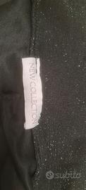 Eleganti pantaloni donna/ragazza a gamba larga, con elastico in vita, in morbido tessuto tipo viscosa colore nero glitterato. Adatti per una taglia S/M