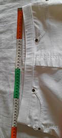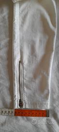 Non ha apertura sul davanti e le tasche sono finte, mentre dietro ci sono due tasche vere, il cinturone è un po elastico per permettere di indossare. Al fondo pantalone c'è la cerniera apribile di 14 cm.