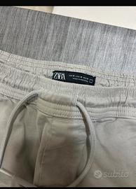 Vendo pantaloni Zara da uomo, taglia M (EUR M, USA M, MEX 31), colore grigio. Modello jogger con elastico in vita e laccetto regolabile per un comfort ottimale. Dotati di tasche laterali e posteriori.